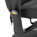 The set features a strong wood and metal frame, filled with high density foam and covered with quality fabric for maximum comfort. The thick seat and the soft backrest are highly comfortable. The backrest reclines enable you to put your feet up on our comfy foot stool. Additionally, with an 8-point massage in 3 intensity levels and 5 different modes, as well as a heating function in waist zone, you can quickly forget the stress of everyday life.